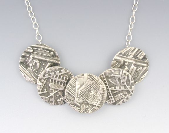 Fine silver (metal clay), sterling chain, 16" long. Each circle ¾" in diameter.