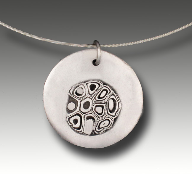 Steel. 1˝" diameter. Nylon coated steel cable, 18". Barrel clasp.