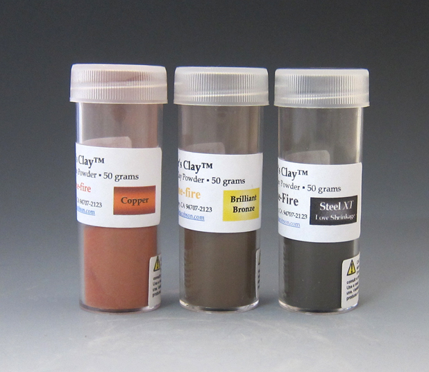 Hadar's Clay™ One-fire Sampler includes 50 grams each of Brilliant Bronze, Copper, and Low-shrinkage Steel XT. Copper and steel are high-fire and can be fired together. Brilliant bronze is mid-fire. They all fire in one phase. This sampler is suitable both for beginners and experienced users of metal clay.