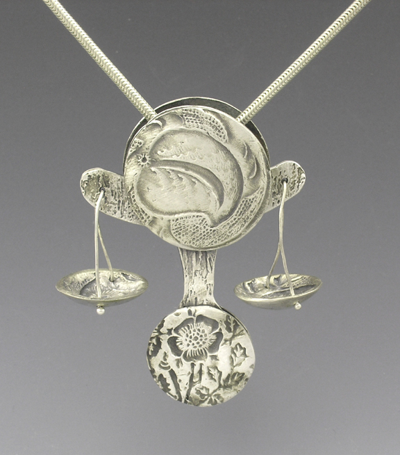 Fine silver (metal clay), sterling chain 18" long. ¾" x ¾".