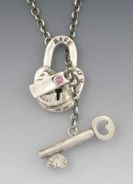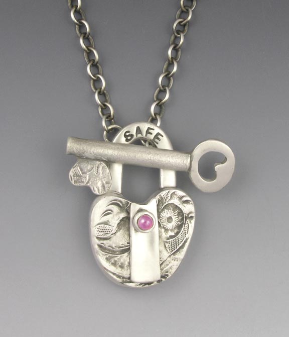 Fine silver (metal clay), garnet, hollow form. Sterling chain, 18" long.