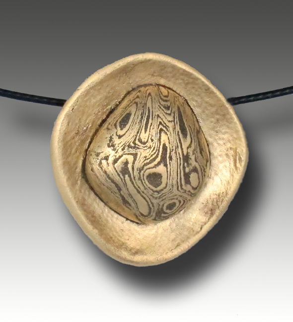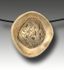 Bronze and steel. 1" x 1" x ¼". Nylon coated steel cable, 18" long. Barrel clasp.