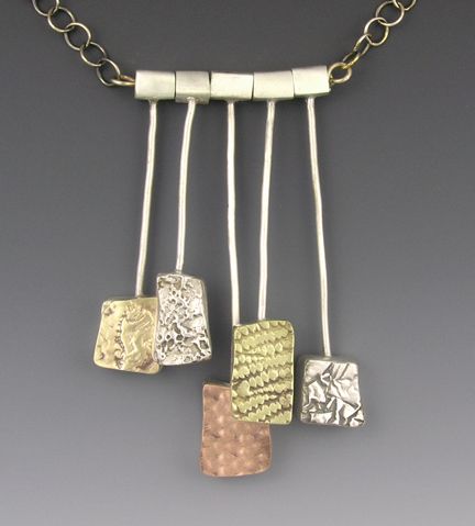 Fine silver (metal clay), copper, brass, bronze, sterling chain, 15" long. Width: 1˝", longest link 2˝".