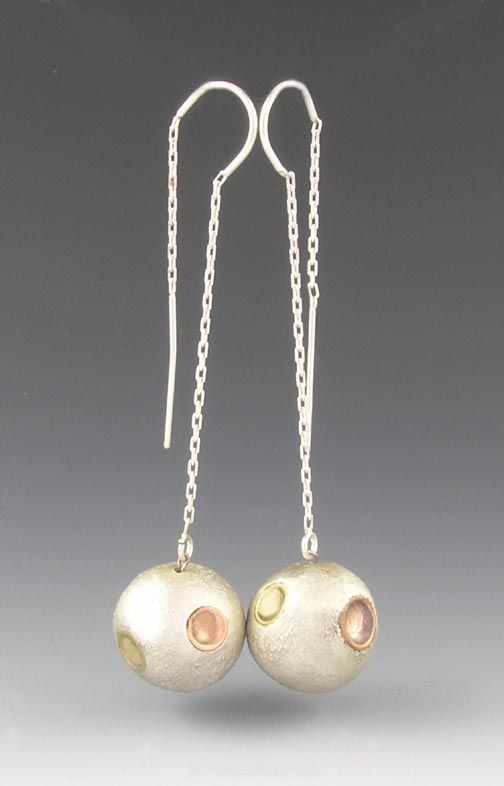 Fine silver (metal clay), copper, bronze. Each sphere ˝" in diameter.